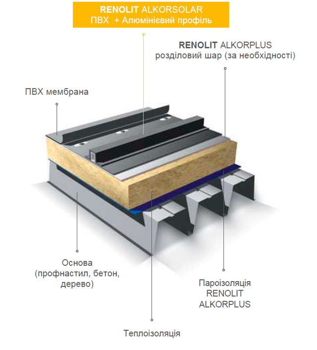 - Профіль з ПВХ RENOLIT ALKORSOLAR 3 м (81600): Забезпечує міцне кріплення панелей, зварюючись із мембраною.